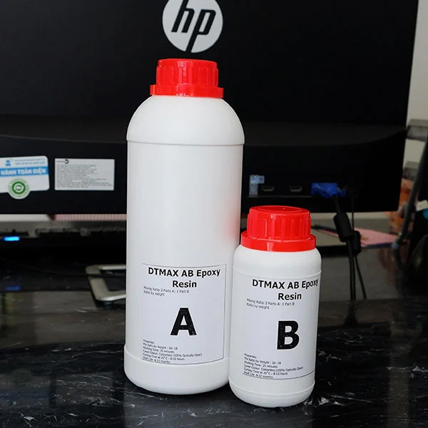 Epoxy Resin hay còn gọi là keo AB. Gồm 2 thành phần chính là A và B. Phần A có dạng phổ biến là Diglycidyl ether of Bisphenol A. Còn phần B là chất đóng rắn gồm nhiều loại khác nhau như: Amidoemies, Polyamides, Aliphatic amines, adducts, mannich, base,…với tính chất riêng biệt.